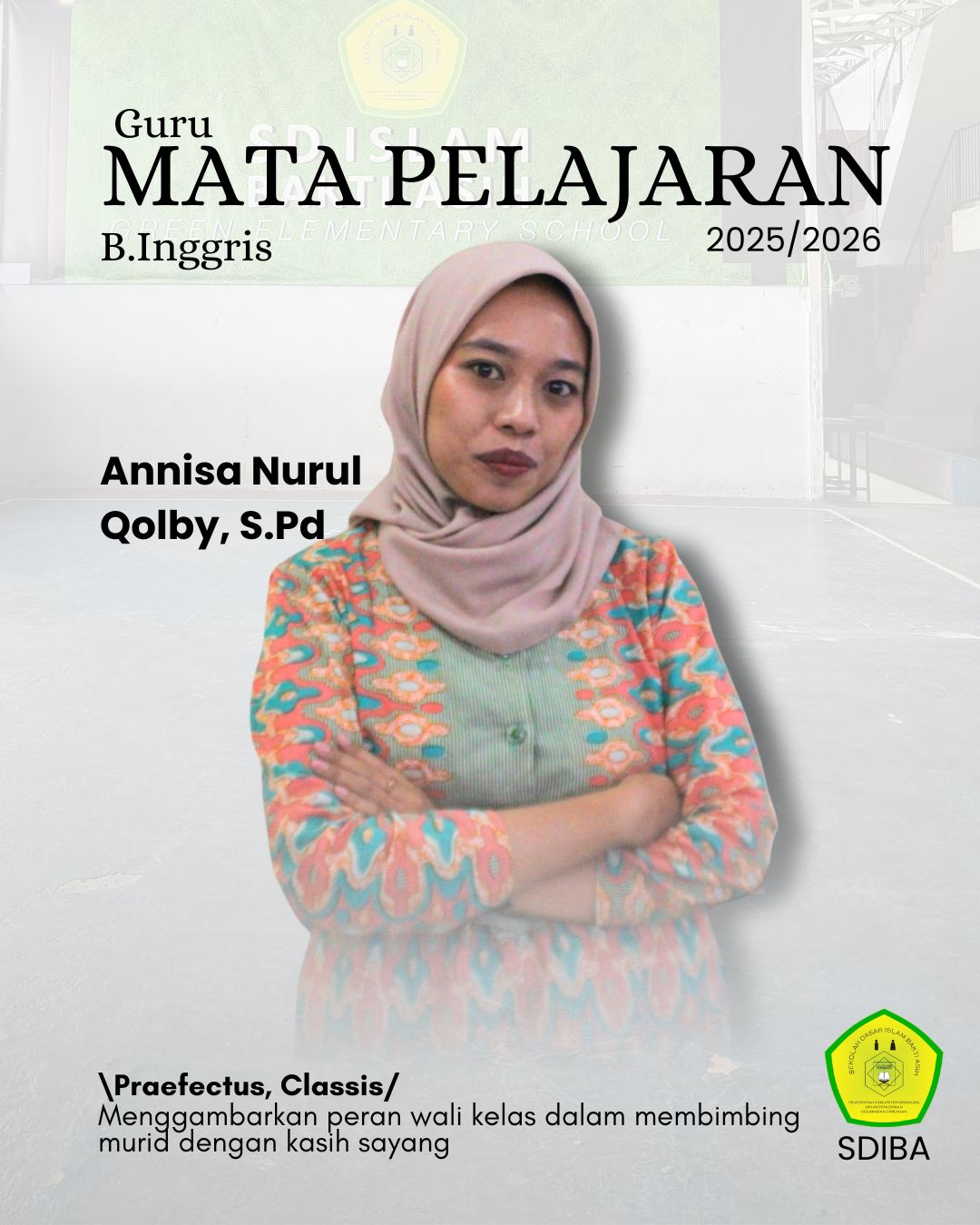 Profil Guru NamaAnnisa Nurul Qolby, S.Pd NIP2025202631 NUPTK KelaminPerempuan Tmp/Tgl Lahir, Pelajaran Pangkat/Gol Tugas TambahanGuru Bahasa Inggris Email Alamat RumahTelp.Hp. Web/Blog Pribadi Profil/Prestasi